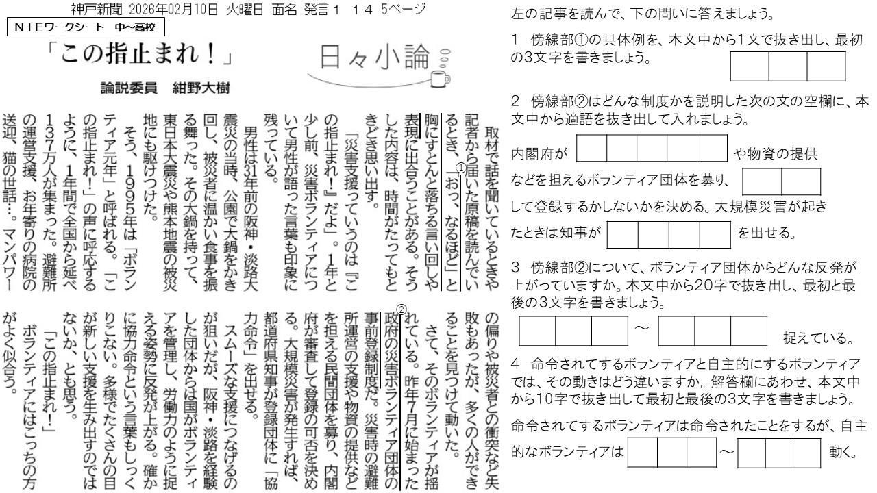2026.2.12ボランティアと命令(社会)