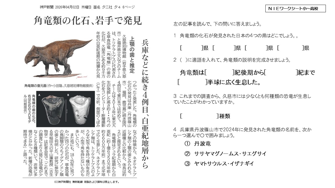 2026.4.7角竜類の化石、岩手で発見(理科)
